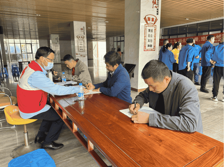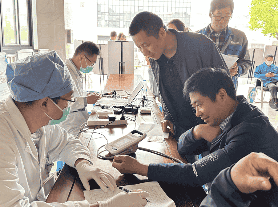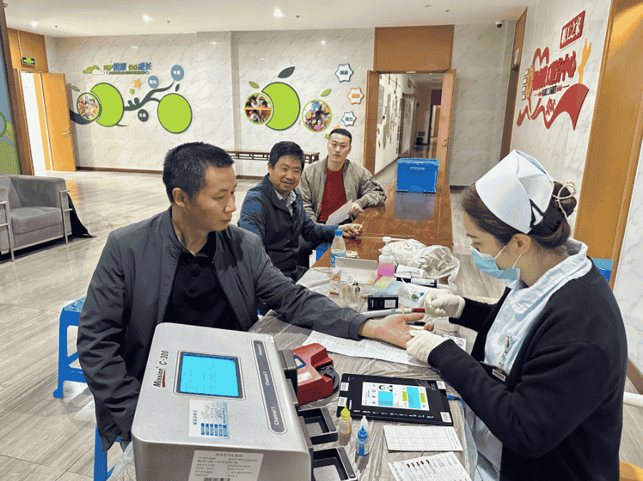 在医护人员与志愿者的指引下,大家有序进行填表、测血压、测血糖、验血等,整个过程有条不紊。