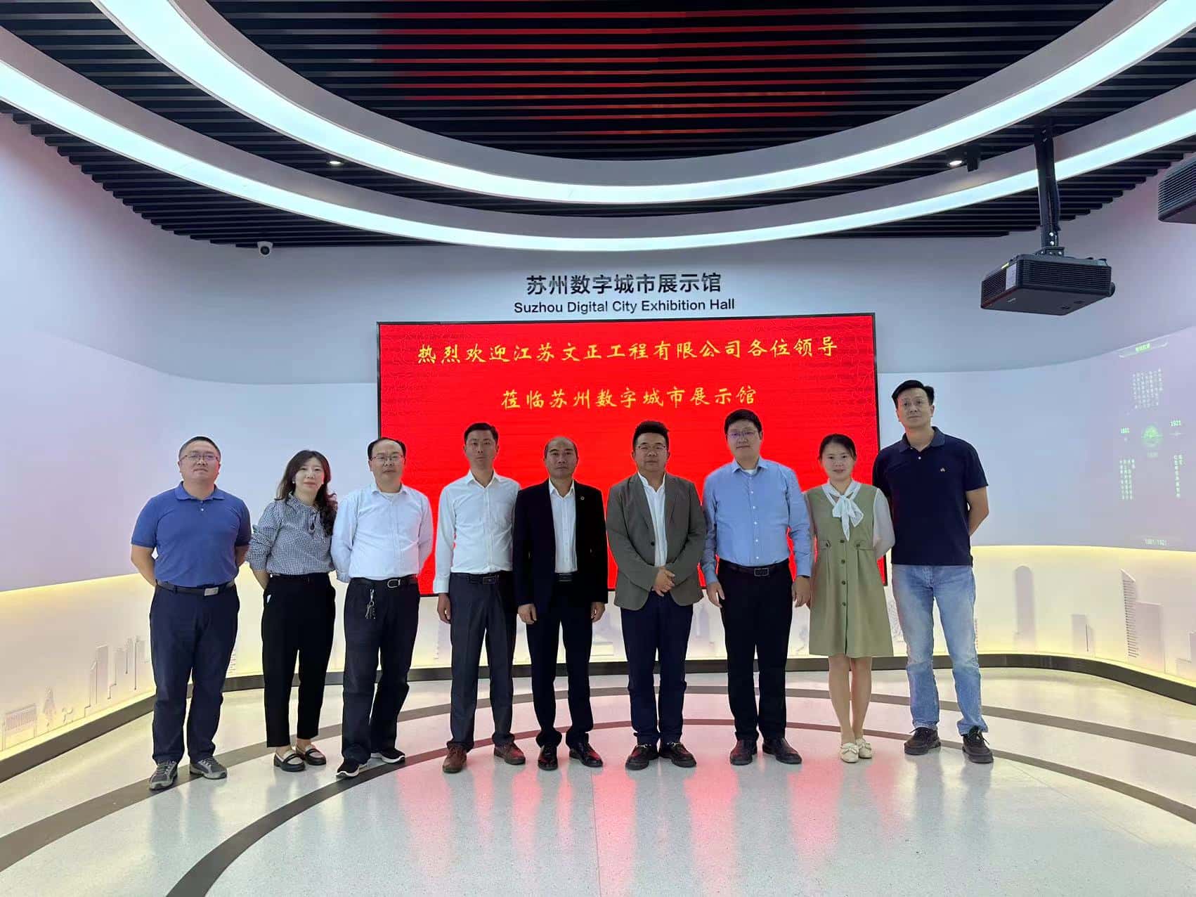 董事长谢洪正一行首先参观了苏州数字城市展示馆,近距离感受苏州电信在智慧社区、云网安全、城市物联感知、工业互联网等方面的核心布局和数字应用,并对云办公、大数据、云计算、区块链以及信创技术等进行询问了解。