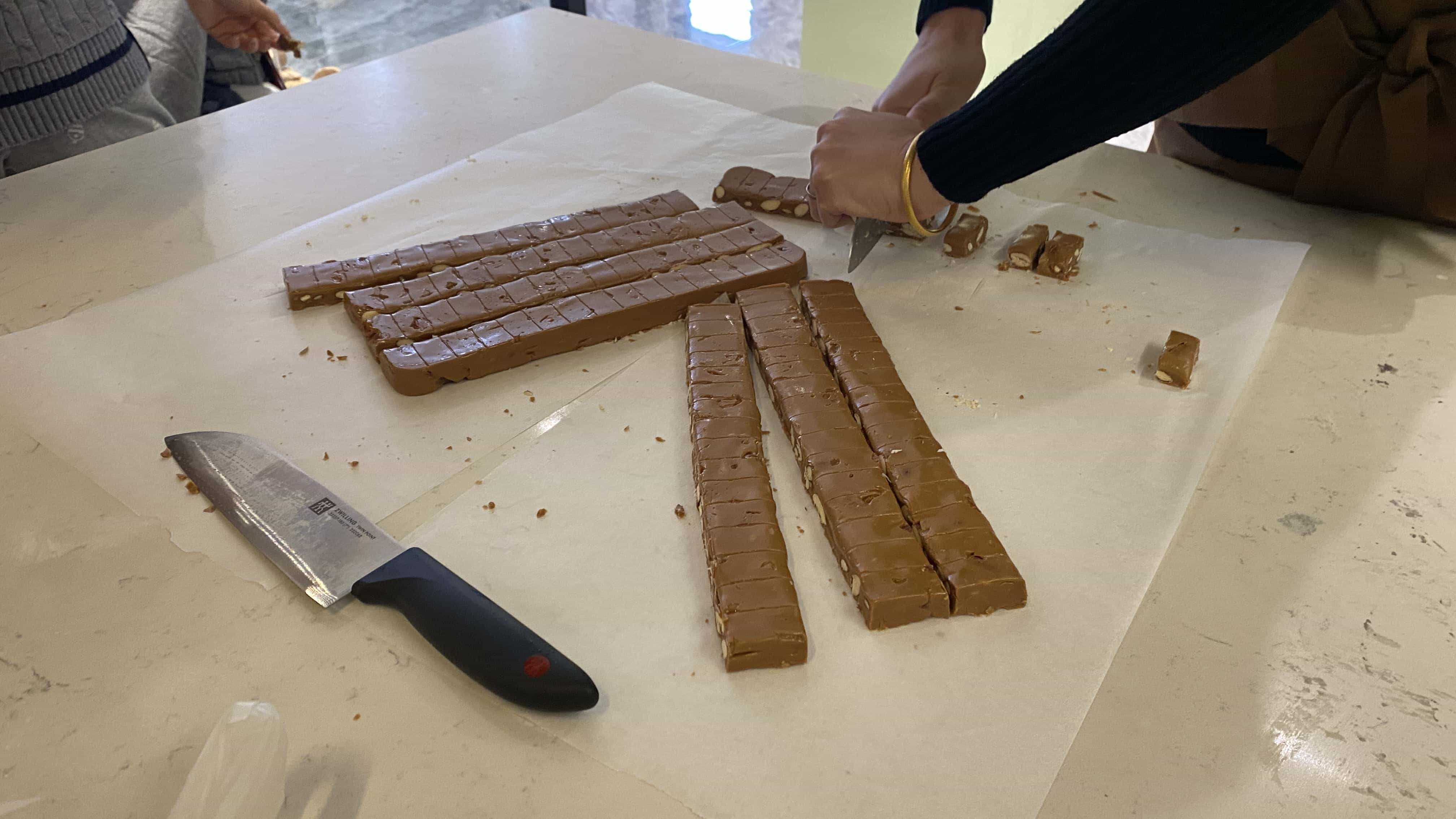 做甜品的参与者们在各自小组的指导下,掌握了制作技巧,展示出了自己的创意和巧手。色泽诱人的芒果班戟,浓郁的奶油和酸甜芒果的碰撞,入口立刻融化的甜蜜,一口就能让你念念不忘!还有巴旦木海盐太妃糖,焦糖的色泽充满温暖的质感,一口咸甜交换,酥脆浓香!