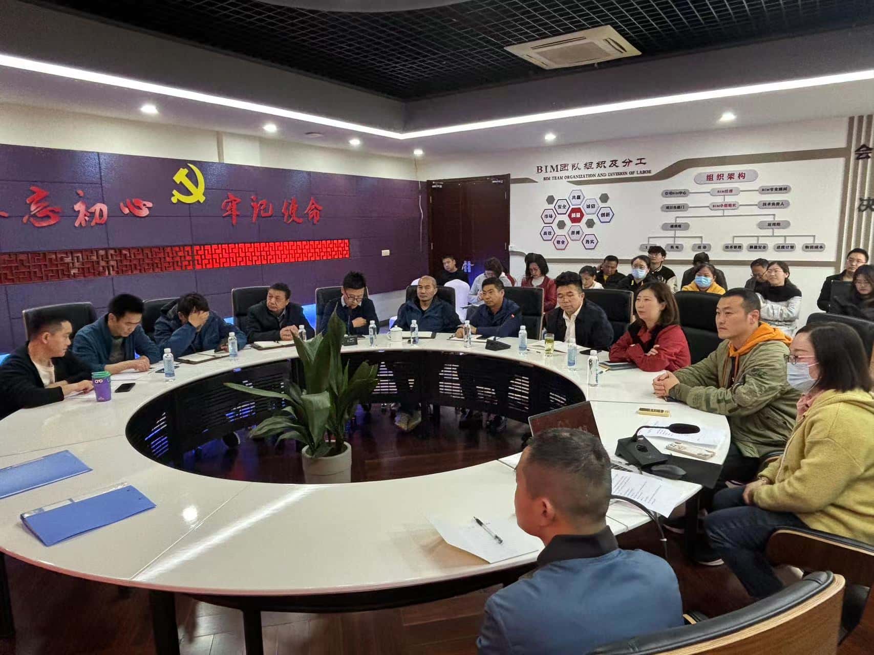 4月20日,我司召开第二季度工作会议。公司总经理谢洪正,常务副总戴国庆,行政副总耿静,经营副总端方勇及各部门员工共同参加本次大会,身在项目现场的员工们也同步参与视频会议。