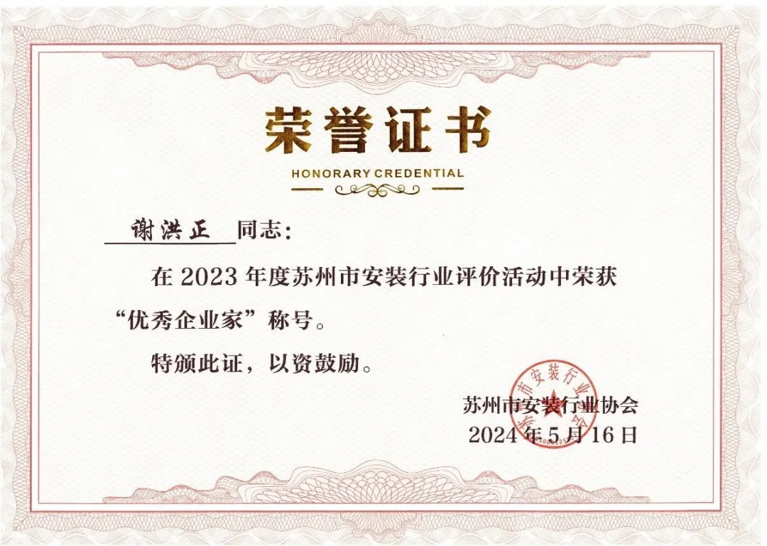 我司将对此次获得的所有荣誉感到无比荣幸,并会以此为动力,进一步加强与各会员单位的交流合作,共同推动苏州市安装行业的持续高质量发展。我们将始终保持敬业精神,恪守初心,凭借优秀的工程质量和服务,为行业发展贡献更大的力量!