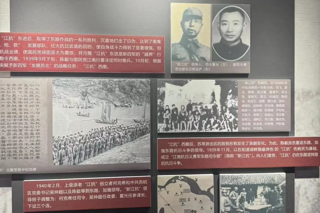 走进纪念馆,可以看到老战士的亲笔书信、烈士的贴身衣物,斑驳的墙面,真实地再现了太湖游击队依靠群众、与日伪顽军艰苦作战的场面。纪念馆分三个篇章,展现了新四军太湖抗日游击支队初建、重建、扩建时期的曲折历程。