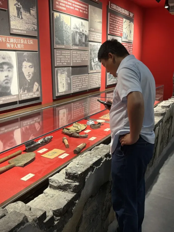 在参观学习过程中,党员们深入了解了新四军太湖游击队的光荣历史和英勇事迹。他们聆听了讲解员的详细介绍,认真观看了陈列的历史文物和图片资料,感受到了革命先烈们为了民族独立和人民解放所做出的巨大牺牲和贡献。除了观看展品,党员们还参与了馆内谍报破解的互动游戏。通过参与游戏,党员们更加直观地感受到了革命斗争的紧迫和复杂性,增强了他们对革命斗争的理解和认识。